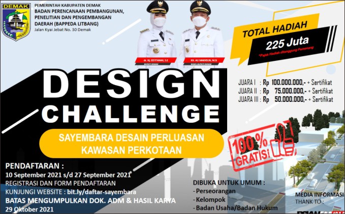Badan Perencanaan Pembangunan, Penelitian dan Pengembangan Daerah Kabupaten Demak akan melaksanakan Sayembara sebagai berikut: